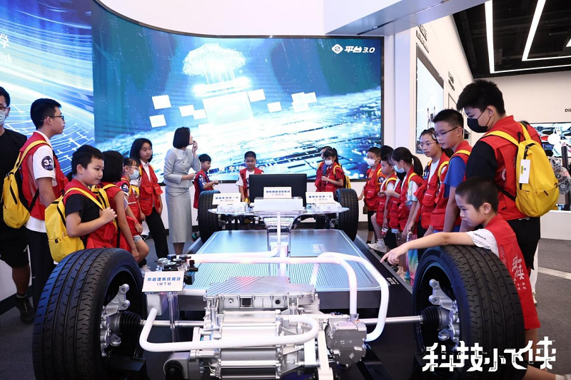 云軌體驗(yàn)結(jié)束后,“科技小飛俠”來到比亞迪博物館,探知汽車世界。博物館里詳細(xì)記錄了比亞迪汽車的發(fā)展歷程、科技創(chuàng)新、榮譽(yù)資質(zhì)等內(nèi)容,看著陌生的世界,小飛俠們走走看看,不時(shí)也會(huì)提出“汽車只能加油嗎?”“新能源汽車如何運(yùn)作?”等問題,在講解員及比亞迪工作人員的耐心解答下,小飛俠們深入了解了汽車的有關(guān)知識(shí),打開了通往汽車世界的大門。