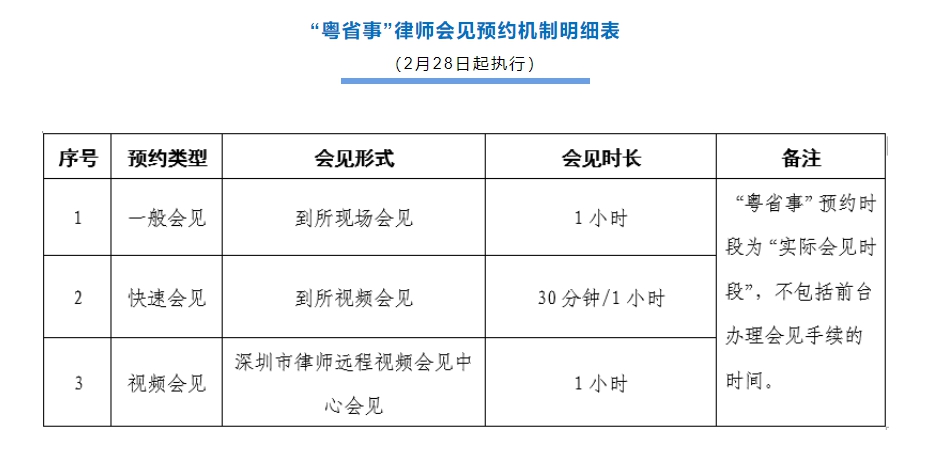 需要提醒律師的是,預(yù)約2月28日以后會(huì)見號(hào)時(shí),注意上述變化,確保律師會(huì)見預(yù)約工作順暢。