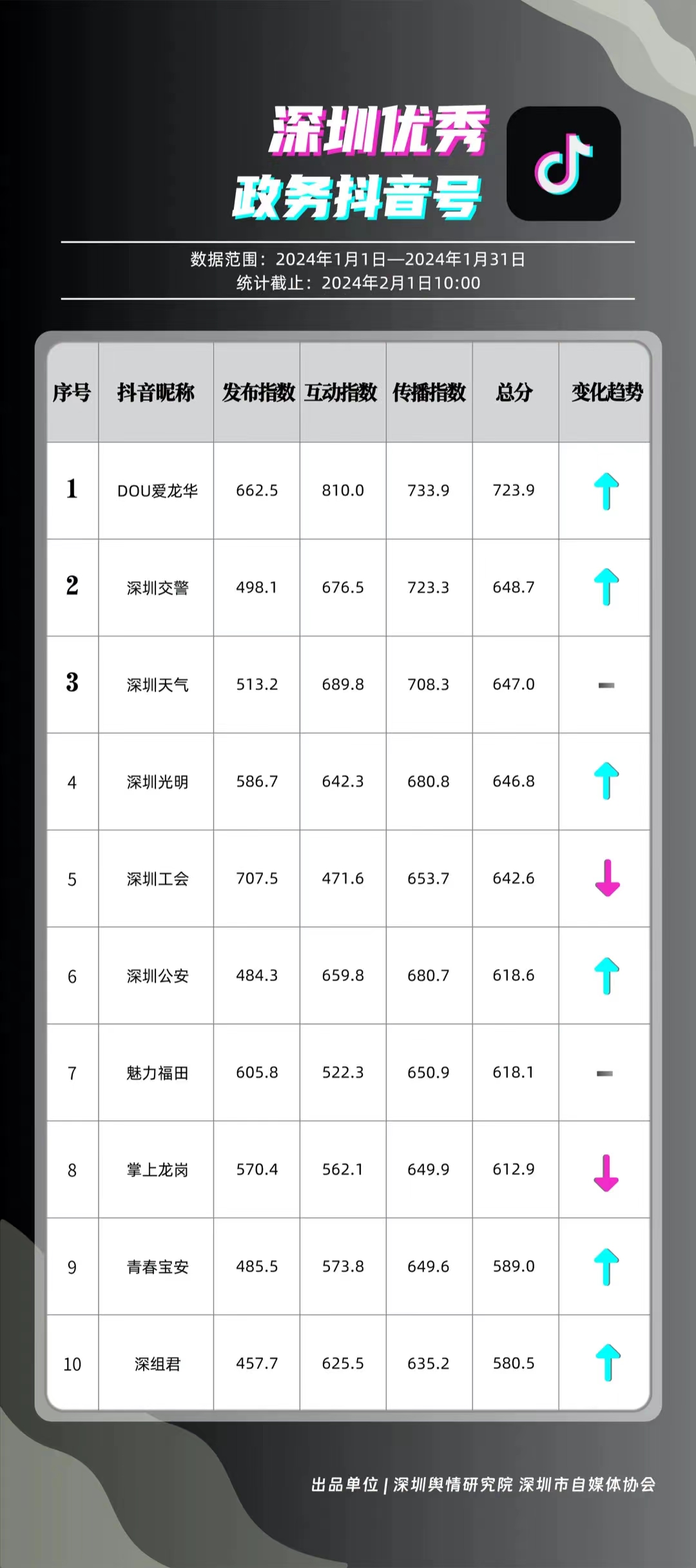 深圳新聞網(wǎng)2月9日訊(記者 陳曉君 實習生 張馳)2月8日,深圳輿情研究院、深圳市自媒體協(xié)會聯(lián)合推出《深圳優(yōu)秀政務新媒體矩陣》(2024年1月期),市衛(wèi)生健康委、市氣象局、福田區(qū)、光明區(qū)、龍崗區(qū)、龍華區(qū)、市公安局、市應急管理局、市交通警察局、羅湖區(qū)的新媒體矩陣獲評“深圳優(yōu)秀政務新媒體矩陣”。這些矩陣在內容發(fā)布、受眾互動和信息傳播方面取得了較好成績,并在深圳政務新媒體規(guī)范有序發(fā)展進程中發(fā)揮著積極作用。