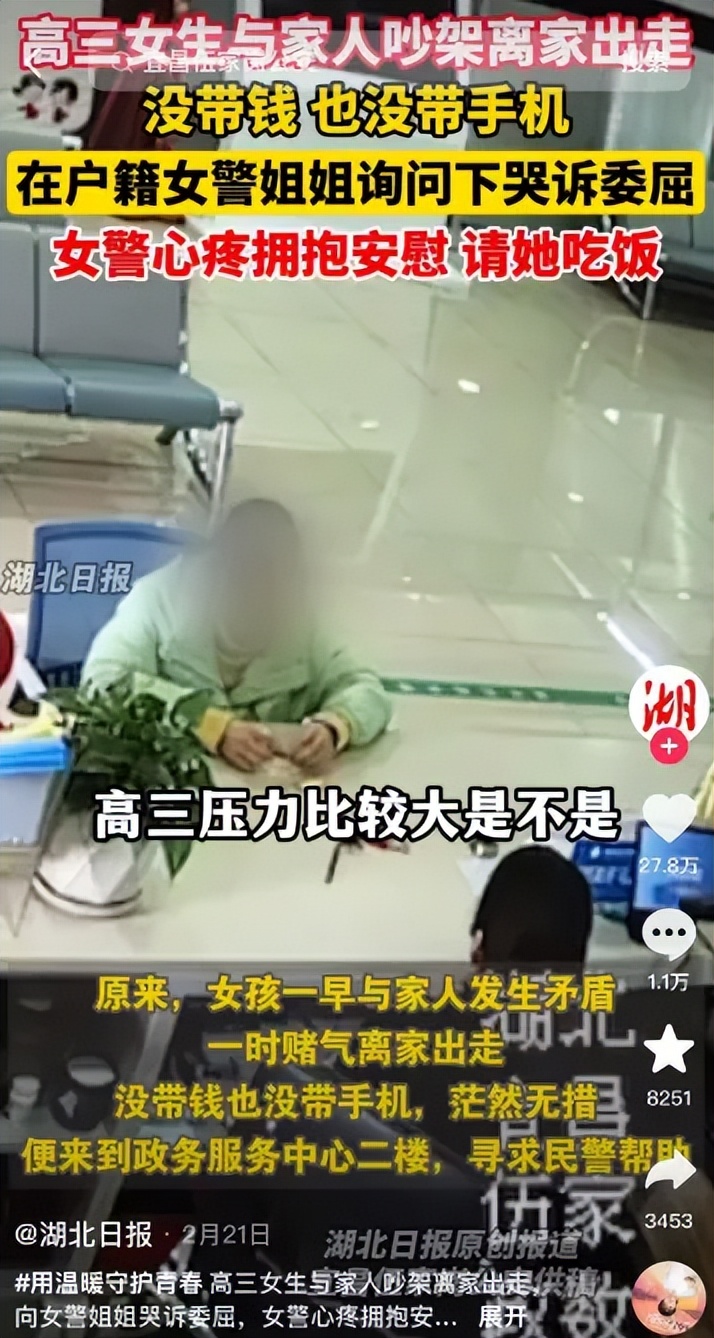 女民警心疼擁抱安慰還請(qǐng)她吃飯