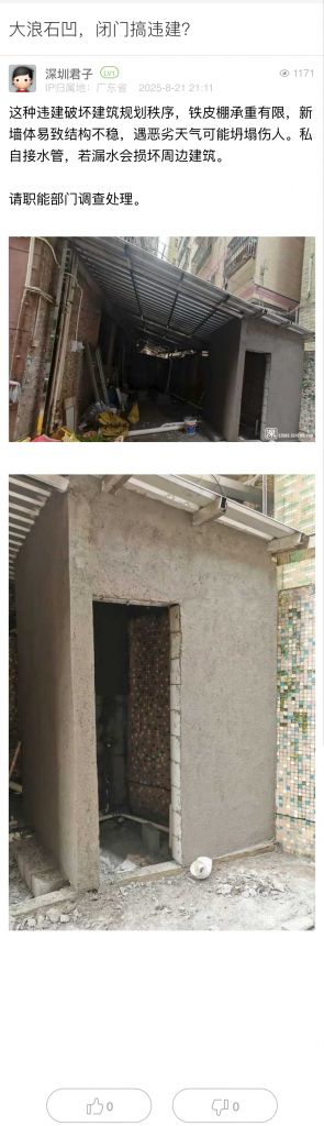 3. 帖文《投訴羅湖區(qū)蓮塘街道聚寶路仙湖楓景長期明顯違建?。ㄎ澹?/a>》