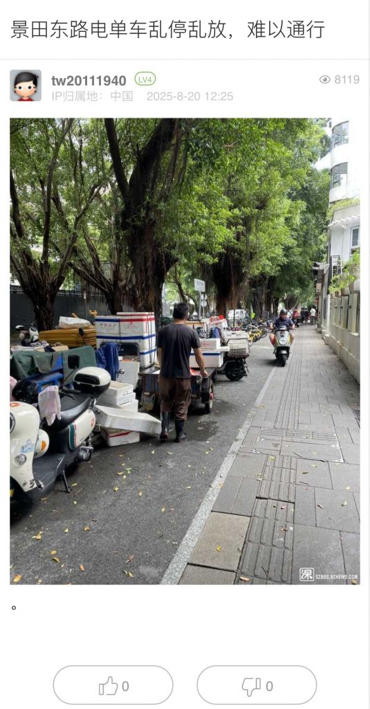 38. 帖文《寶安石巖街道人民醫(yī)院附近有非機動車道大量電雞與機動車車搶道》