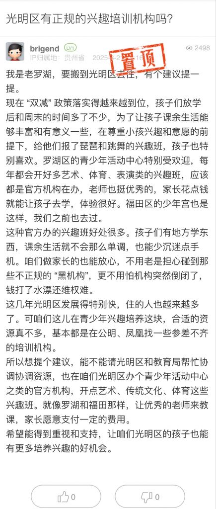 21. 帖文《光明區(qū)有正規(guī)的興趣培訓機構嗎?》