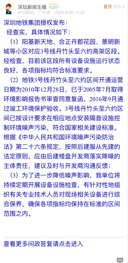 33. 帖文《關于優(yōu)化深圳地鐵3號線龍崗丹竹頭段噪音問題的建議》
