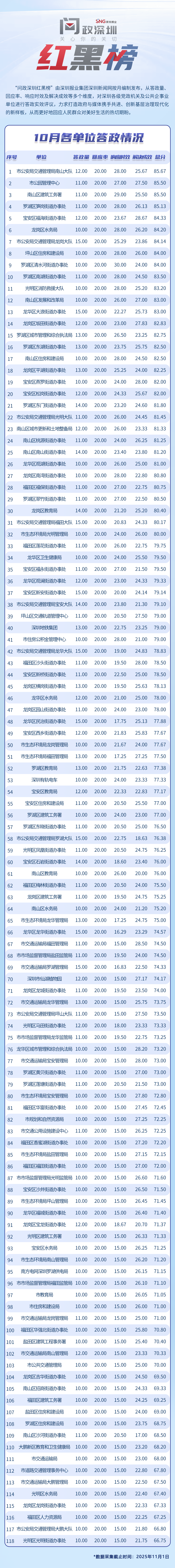 “問政深圳紅黑榜”具有科學(xué)、合理、完備的綜合評(píng)價(jià)體系,能夠綜合評(píng)估深圳各級(jí)黨政機(jī)關(guān)和公共企事業(yè)單位的答政情況。