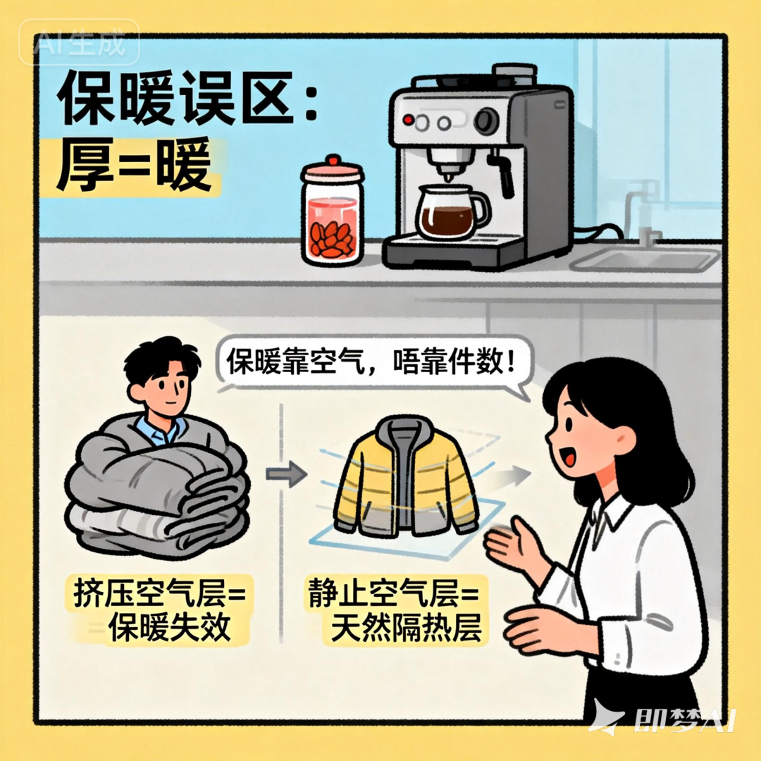 寒潮席卷全國,多地氣溫驟降,保暖成了大家最關(guān)心的話題。不少人覺得“裹得越厚越暖和”,在羽絨服里層層疊加毛衣、衛(wèi)衣,結(jié)果反而又悶又不暖,甚至汗?jié)裰鴽觥?/p>