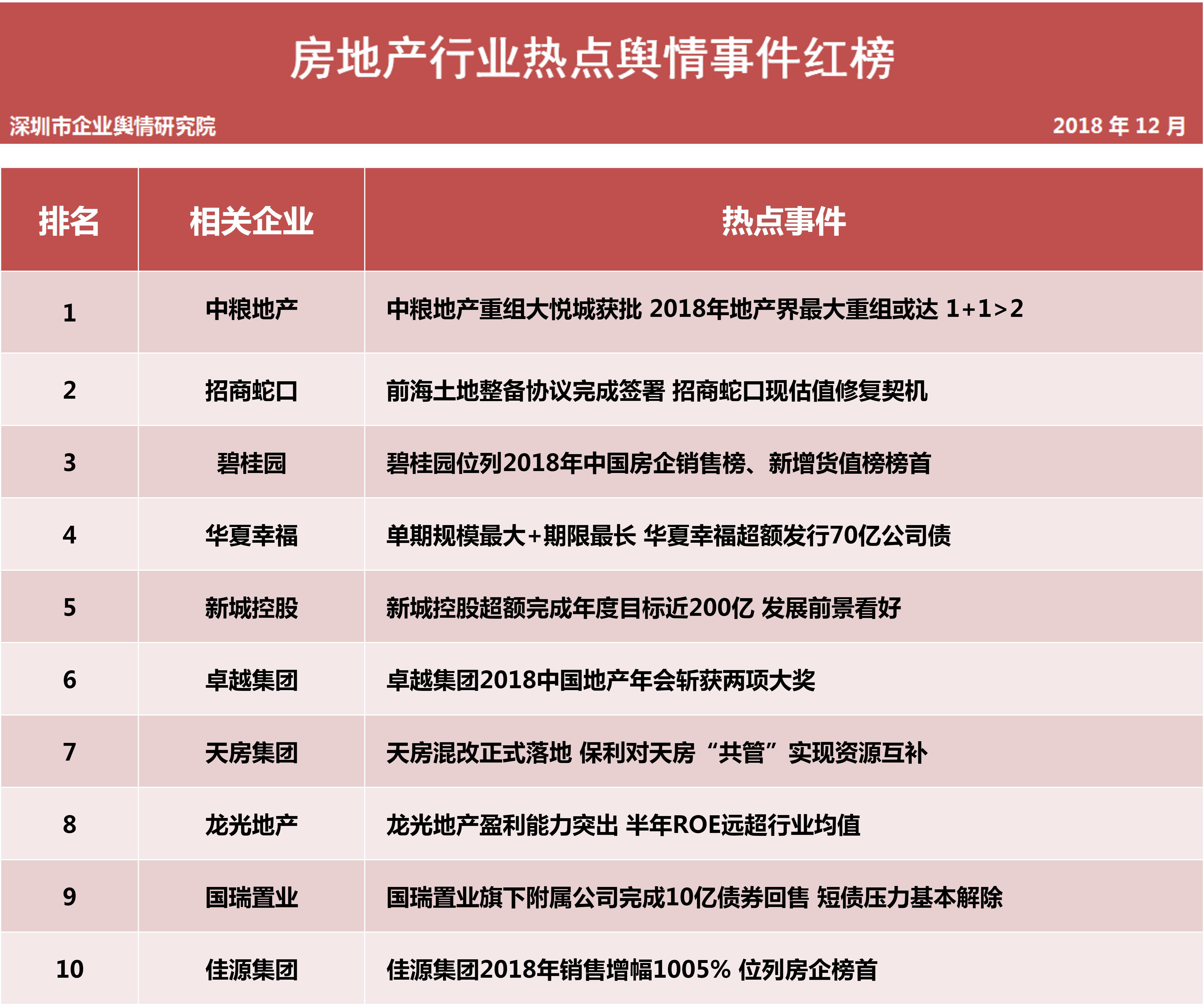 1月31日,深圳企業(yè)輿情研究院發(fā)布第十二批企業(yè)輿情榜單。本次榜單重點聚焦房地產及醫(yī)藥保健兩個行業(yè)。
